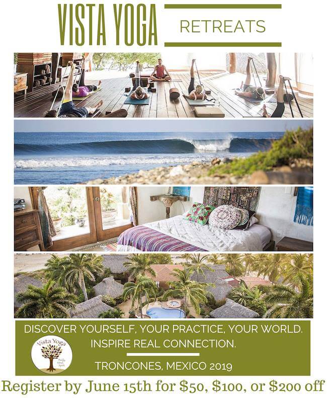 -AM and PM yoga classes with Ted Roseen -60 minute holistic massage -option of a daily yoga class led by Present Moment Retreat staff -daily brunch and dinner at the on-location 5-star restaurant -accommodations in a beautiful, authentic Mexican cabana in ear shot of the crashing waves -baby sea turtle release -There is also much more available ala carte (i.e. smoothies, cocktails, sea kayaking tour, horse riding on the beach, hikes, massage, stand up paddle boarding, and surfing lessons!)